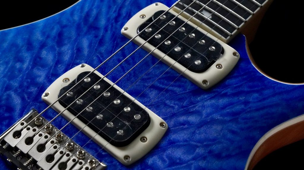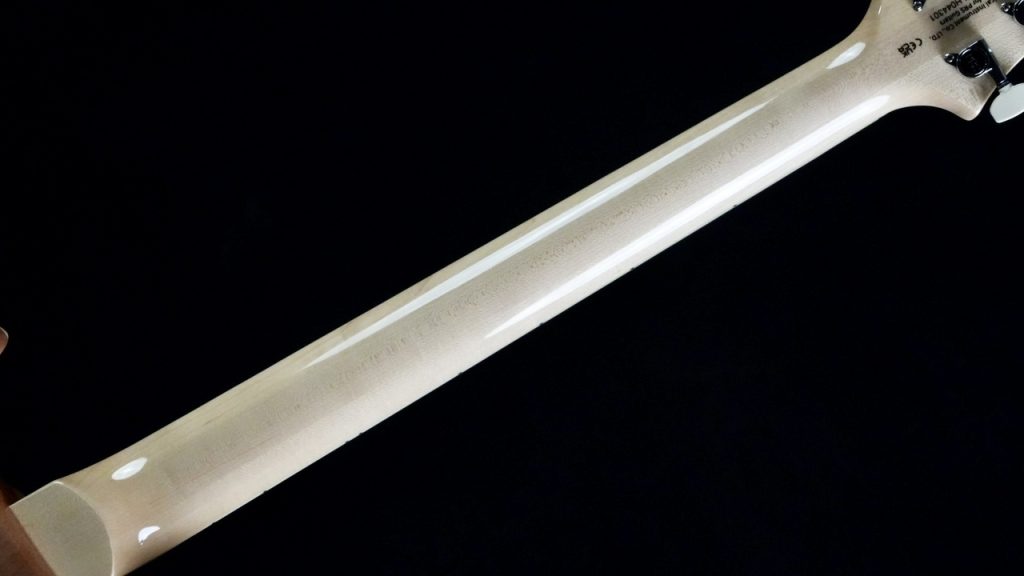 ヴェニアの下には十分な厚みを持ったプレーンメイプルが用いられており、トップ材としての機能をしっかりと果たしています。そのため視覚的な高級感だけでなく、音響的にもメイプルトップならではのアタック感や明瞭なレスポンスを確保した設計となっています。