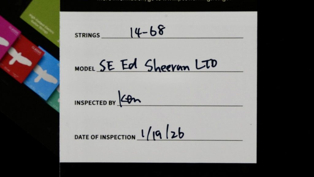 新品購入時のタグですが、INSPECTED BY という項目に、国内検品時の PRS テックチーム担当者のサインが入ります。