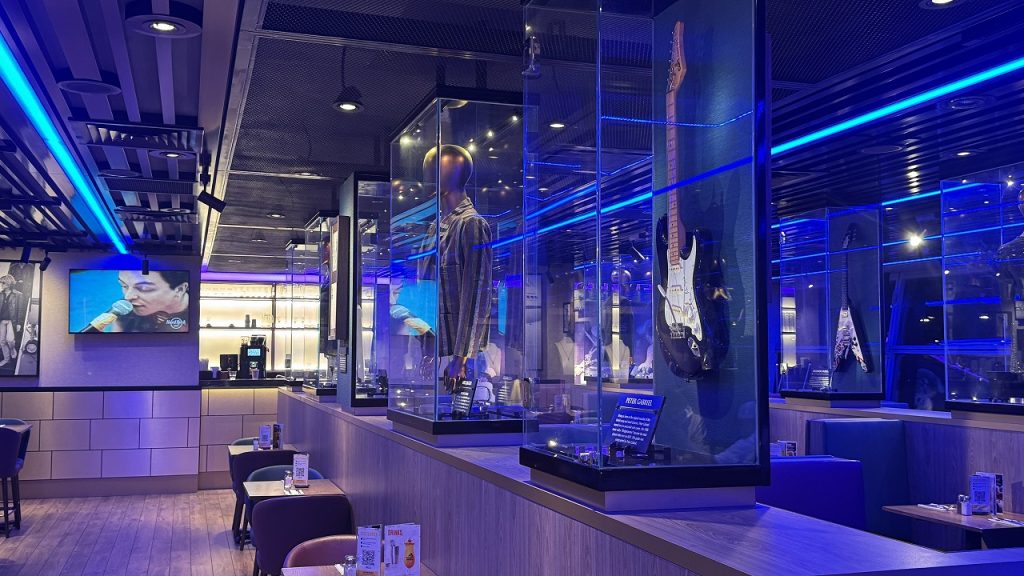 帰路のトランジットで立ち寄ったクアラルンプール国際空港のハードロックカフェでは、著名なミュージシャンたちの貴重なオートグラフ入りギターがずらりと並ぶ光景を眺めながら軽食を楽しみ、ファクトリー視察の興奮が冷めやらぬまま、音楽の歴史と情熱を最後まで肌で感じる贅沢なひとときを過ごすことができました。