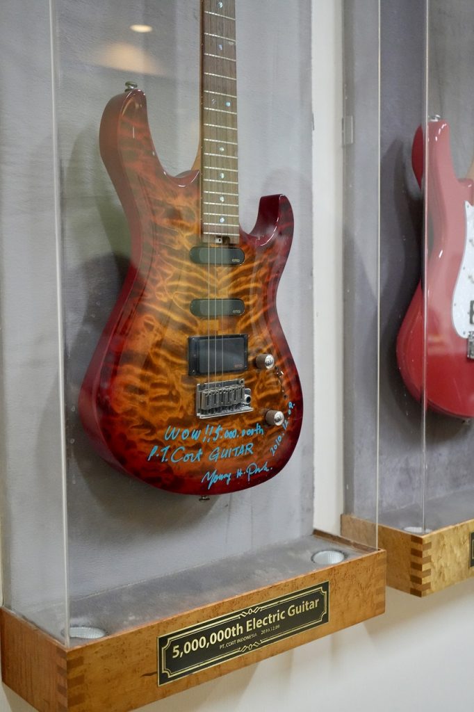 展示されているメモリアルなギターをよく見ると、なんと「500万本」の文字が。世界中のギタリストの手に渡った500万本もの楽器が、この場所から生まれたのかと思うと、そのスケールに圧倒されます。