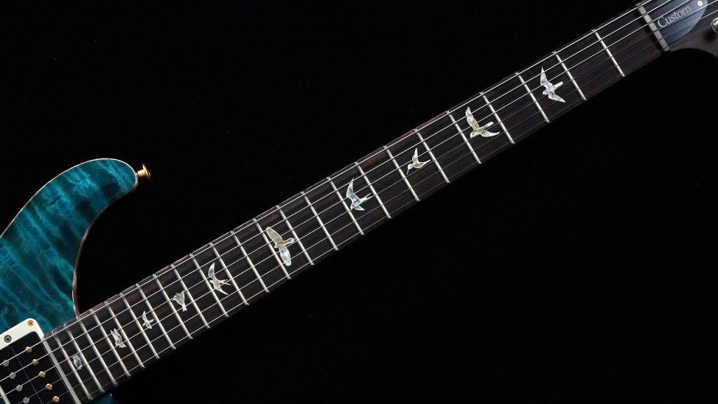 フィンガーボードには、しっとりとした手馴染みと、粘りのあるトーンを生み出すインディアン・ローズウッドを採用しています。そのダークな色調の上で、PRS の象徴である「バードインレイ」がひときわ鮮やかな輝きを放ちます。